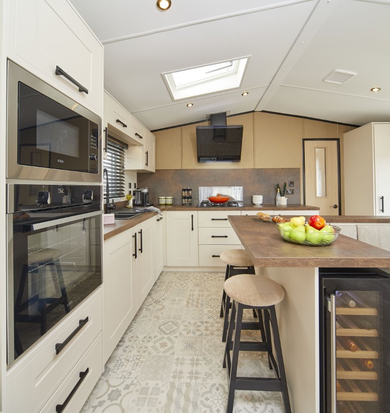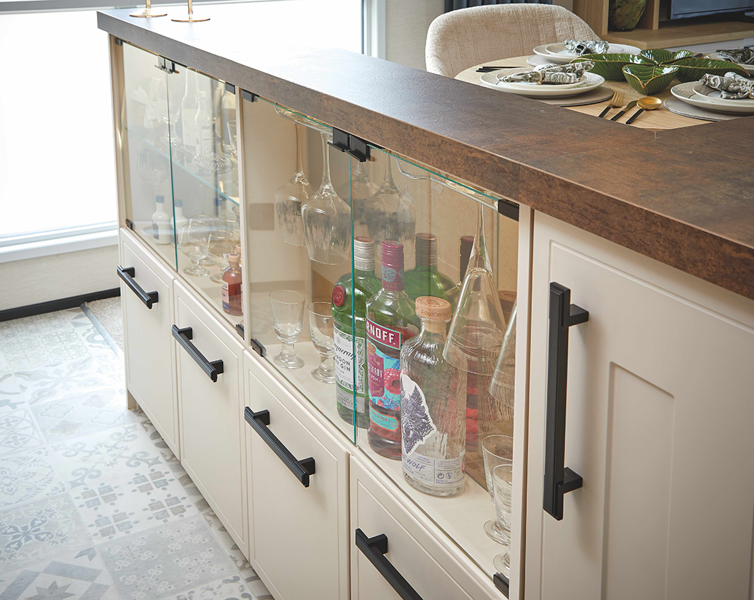 dining island, complete with a cocktail bar, wine cooler and stylish seating, perfect for entertaining or enjoying an indulgent evening in.