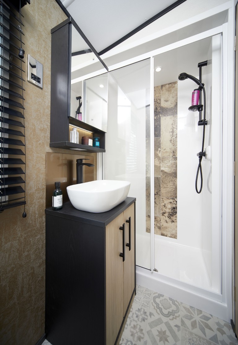 thermostatically controlled shower, heated towel rail, and thoughtfully designed Carnaby storage.